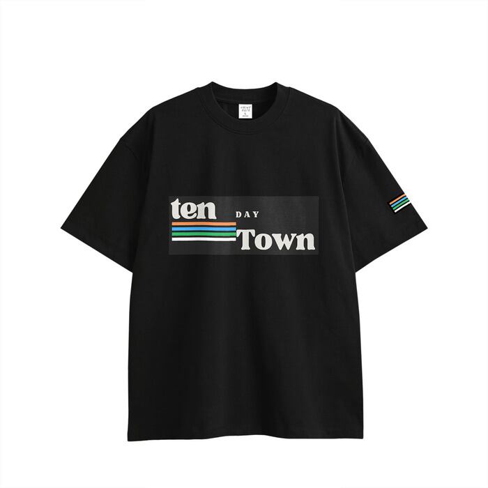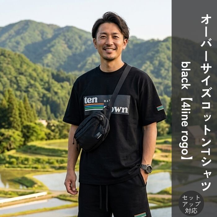 TDT【4lineロゴプリント】 オーバーサイズ コットンTシャツ (セットアップ 対応) ブラック