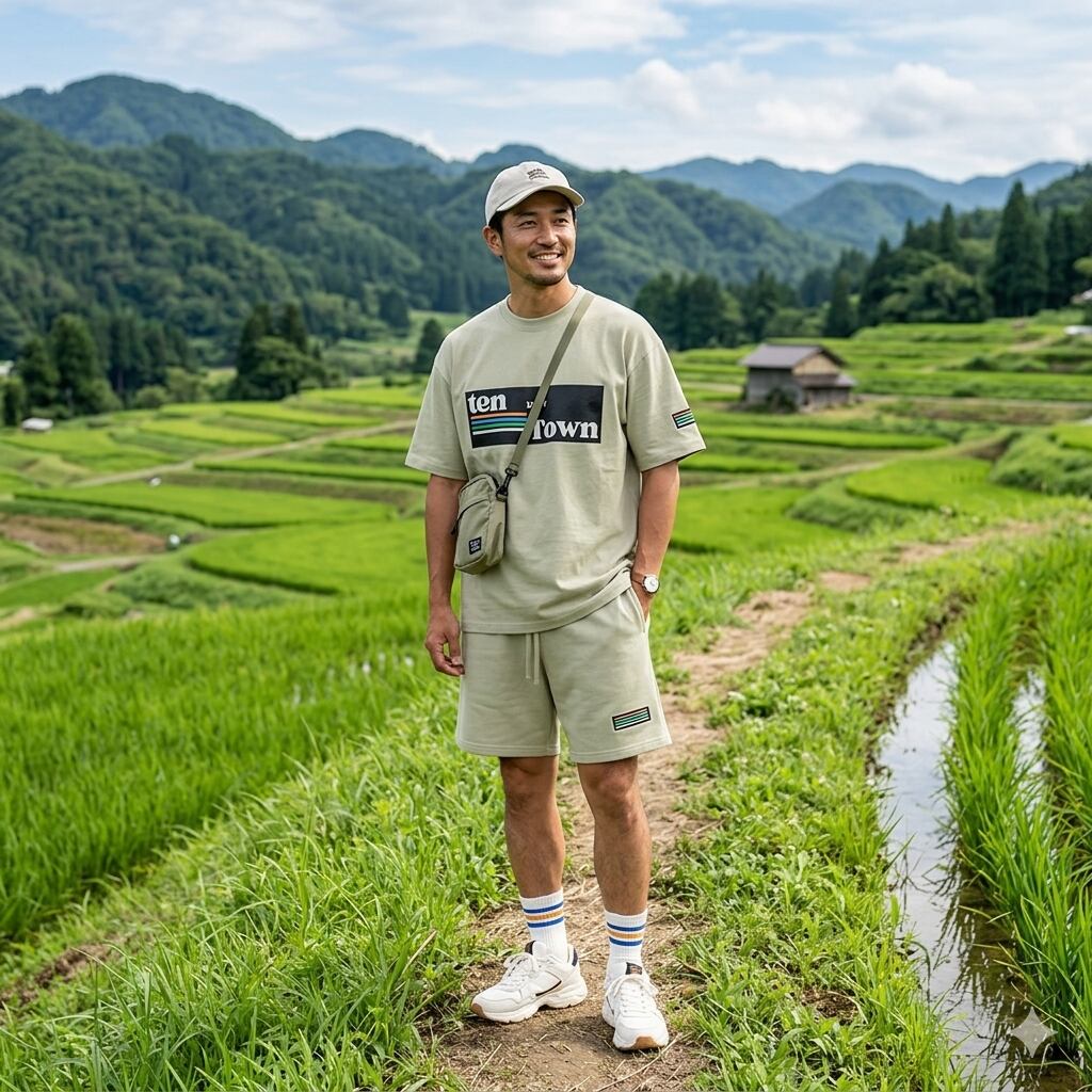 TDT【4lineロゴプリント】オーバーサイズ コットンTシャツ (セットアップ 対応) ベージュ