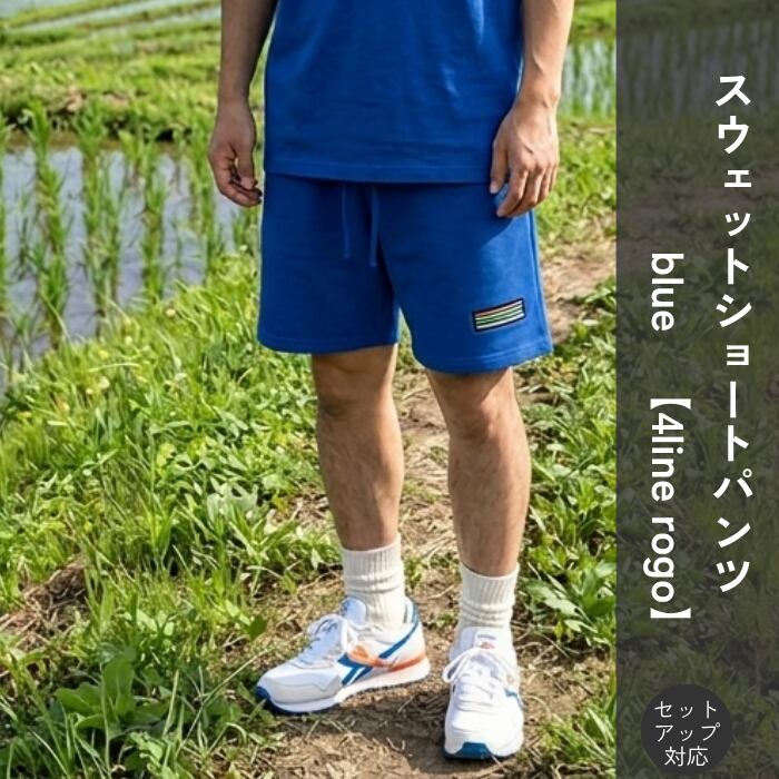 TDT【4lineロゴプリント】スウェットショートパンツ (セットアップ 対応) ブルー