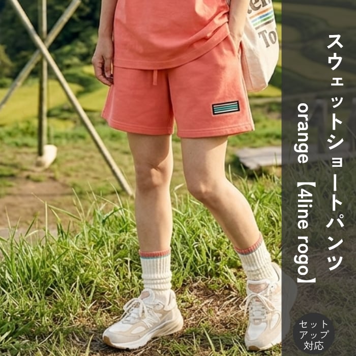 TDT【4lineロゴプリント】スウェットショートパンツ (セットアップ 対応) オレンジ