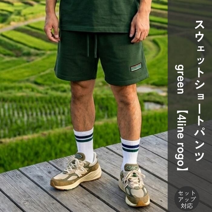 TDT【4lineロゴプリント】スウェットショートパンツ (セットアップ 対応) グリーン