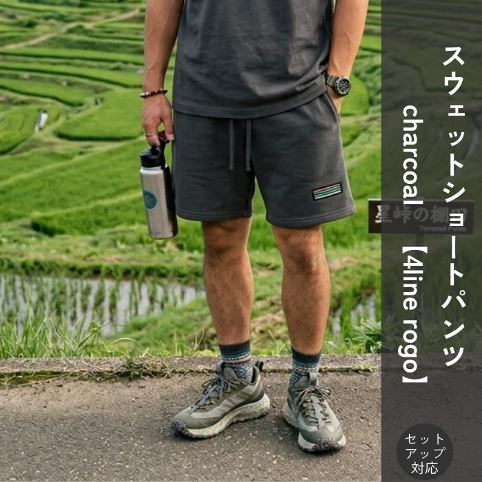 TDT【4lineロゴプリント】スウェットショートパンツ (セットアップ 対応) チャコール