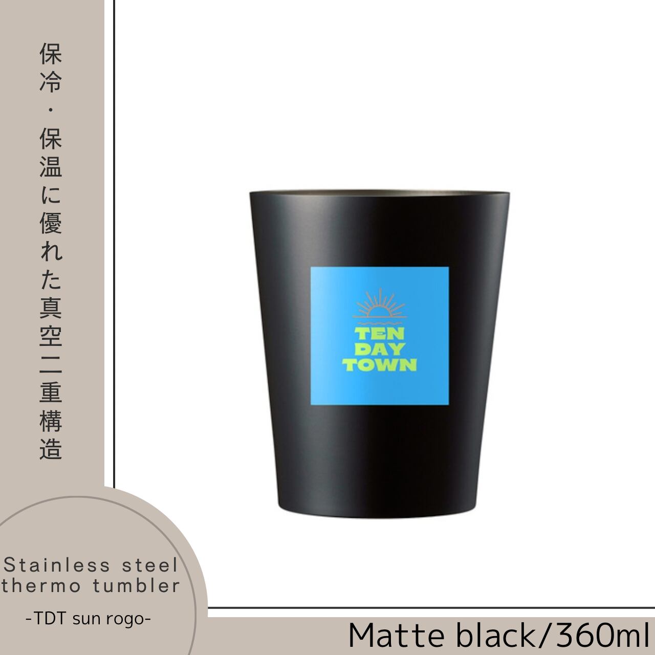 TDT【sunロゴプリント】ステンレスサーモタンブラー 360ml マットブラック