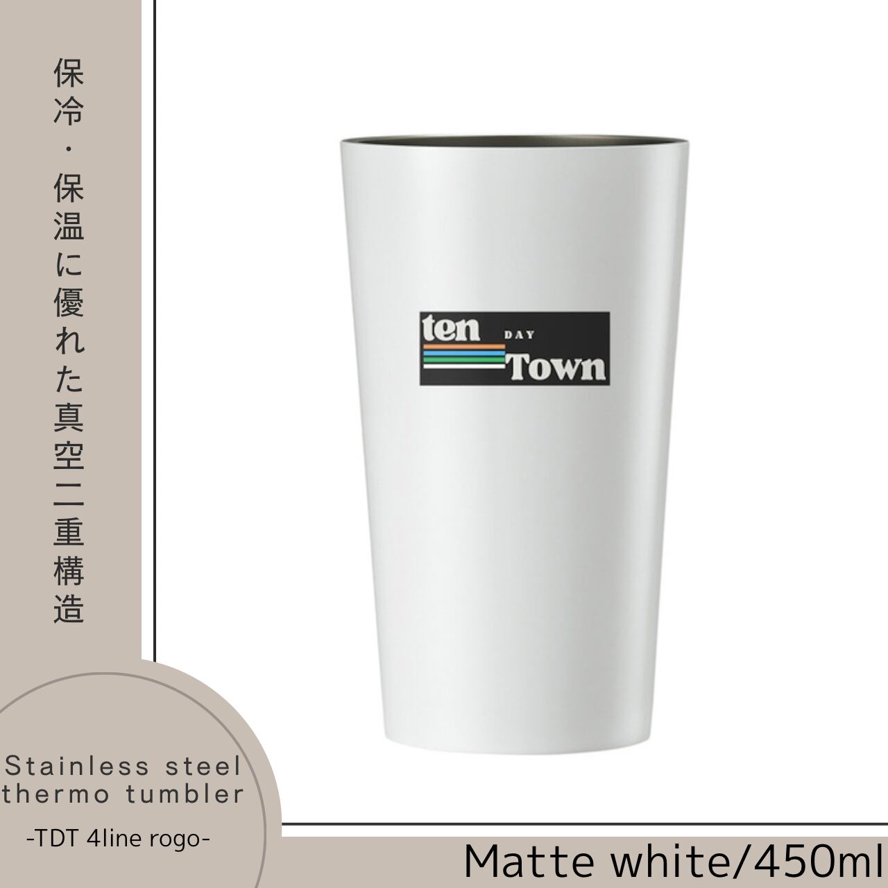 TDT【4lineロゴプリント】ステンレスサーモタンブラー 450ml マットホワイト