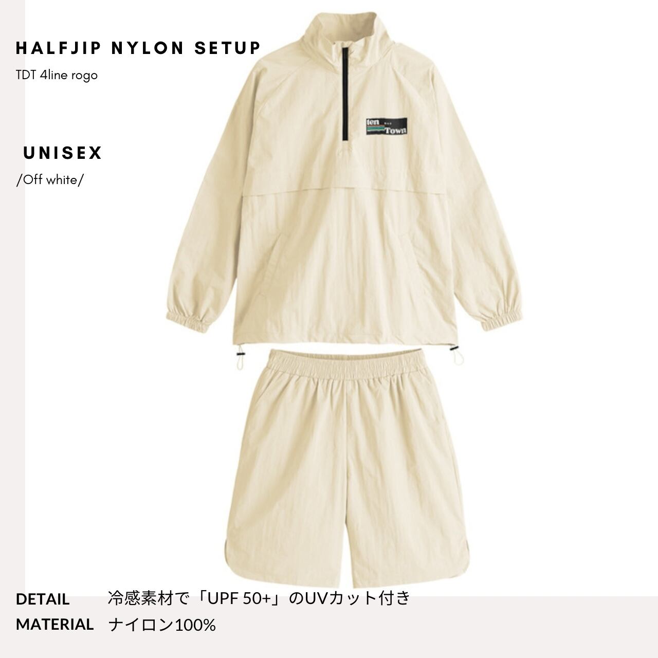 TDT【4lineロゴプリント】ハーフジップ ナイロンセットアップ オフホワイト