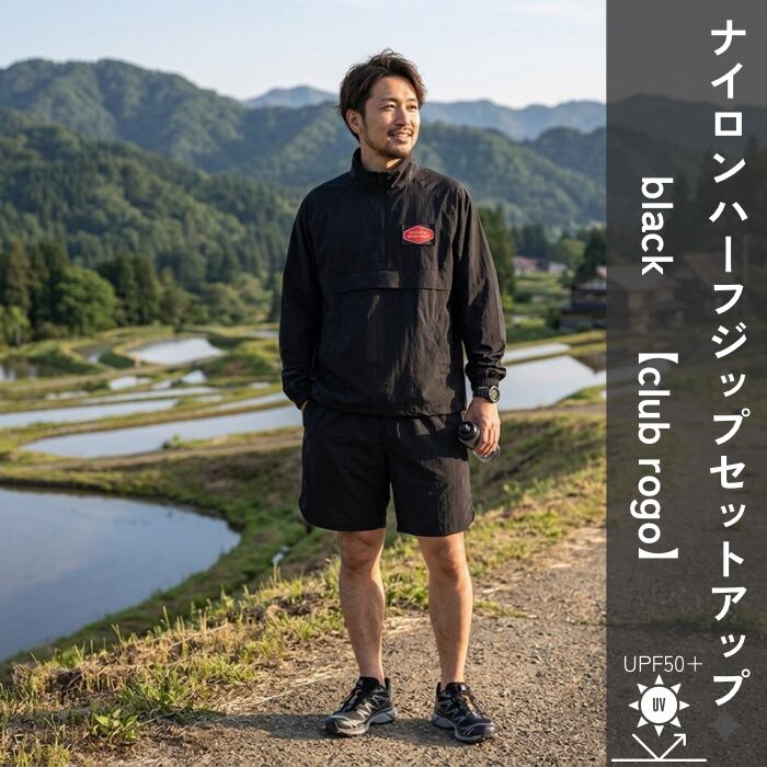 TDT【clubロゴプリント】ハーフジップ ナイロンセットアップ ブラック
