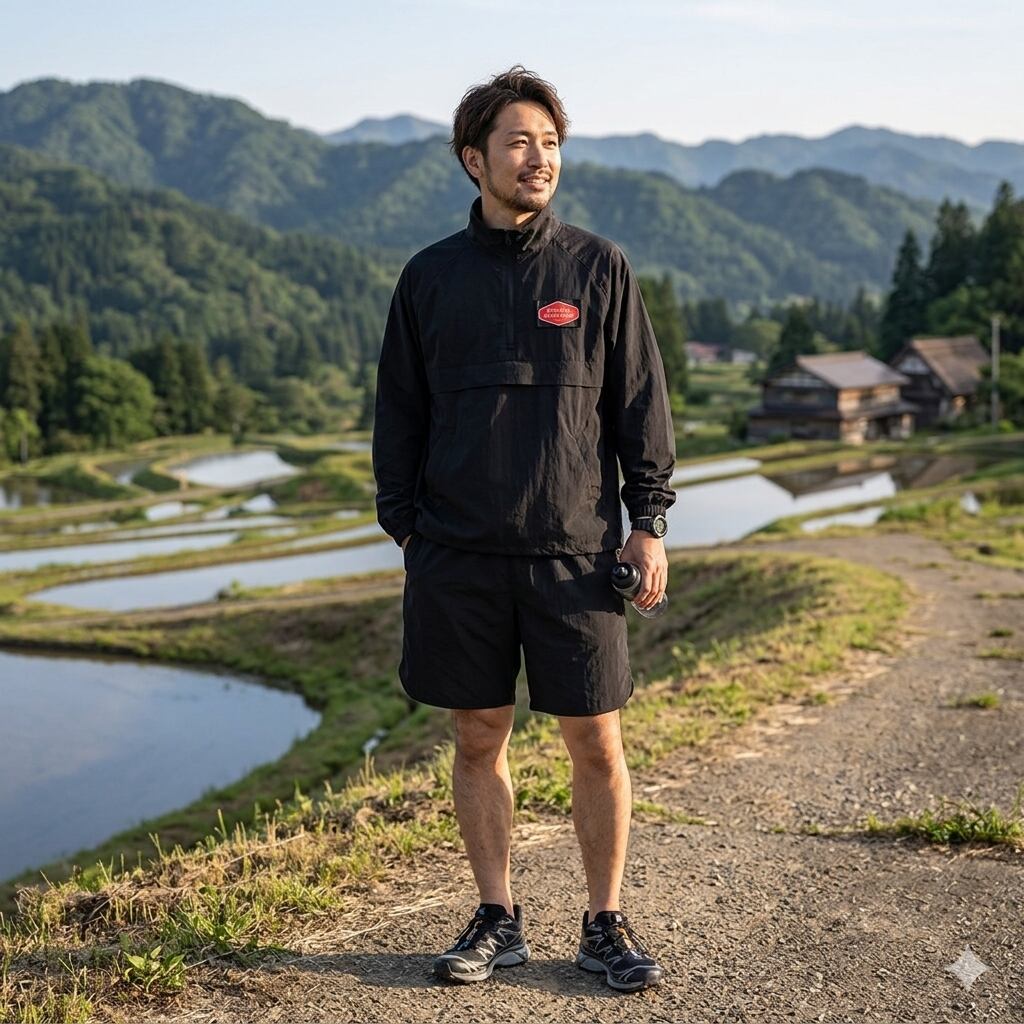 軽量で動きやすいナイロンセットアップ。