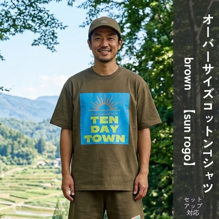TDT【sunロゴプリント】オーバーサイズ コットンTシャツ (セットアップ 対応) ブラウン