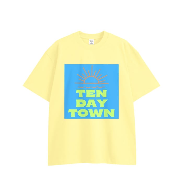 TDT【sunロゴプリント】オーバーサイズ コットンTシャツ (セットアップ 対応) ライトイエロー