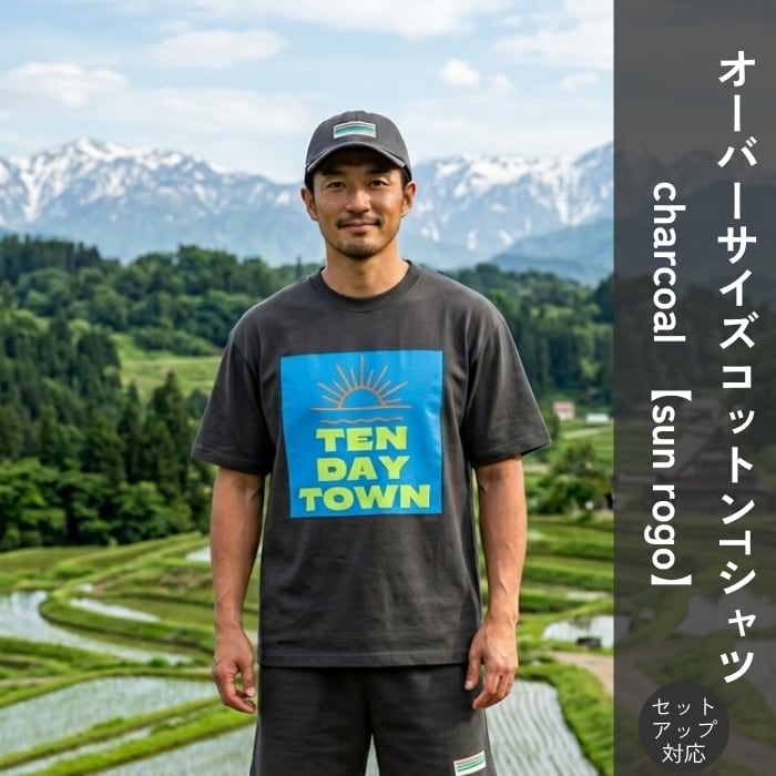 TDT【sunロゴプリント】オーバーサイズ コットンTシャツ (セットアップ 対応) チャコール