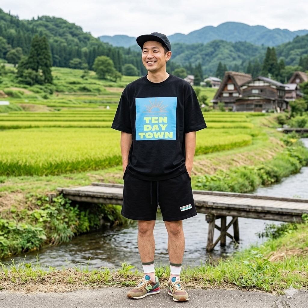 TDT【sunロゴプリント】オーバーサイズ コットンTシャツ (セットアップ 対応) ブラック