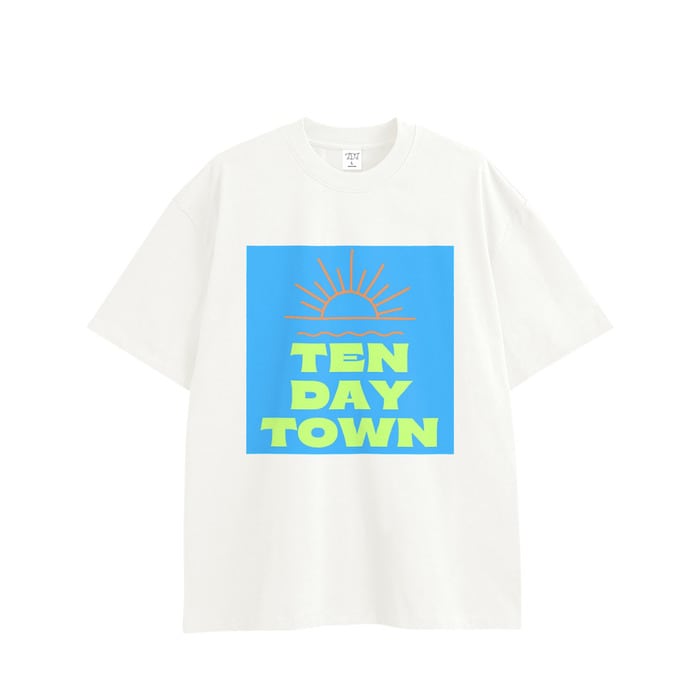 TDT【sunロゴプリント】オーバーサイズ コットンTシャツ (セットアップ 対応) ホワイト