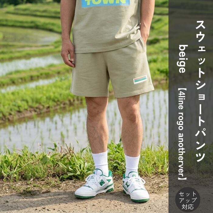 TDT 【4lineロゴプリント another ver.】スウェットショートパンツ (セットアップ 対応) ベージュ