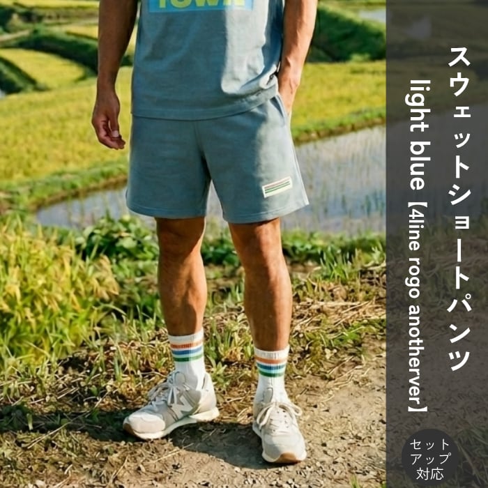 TDT 【4lineロゴプリント another ver.】スウェットショートパンツ (セットアップ 対応) ライトブルー