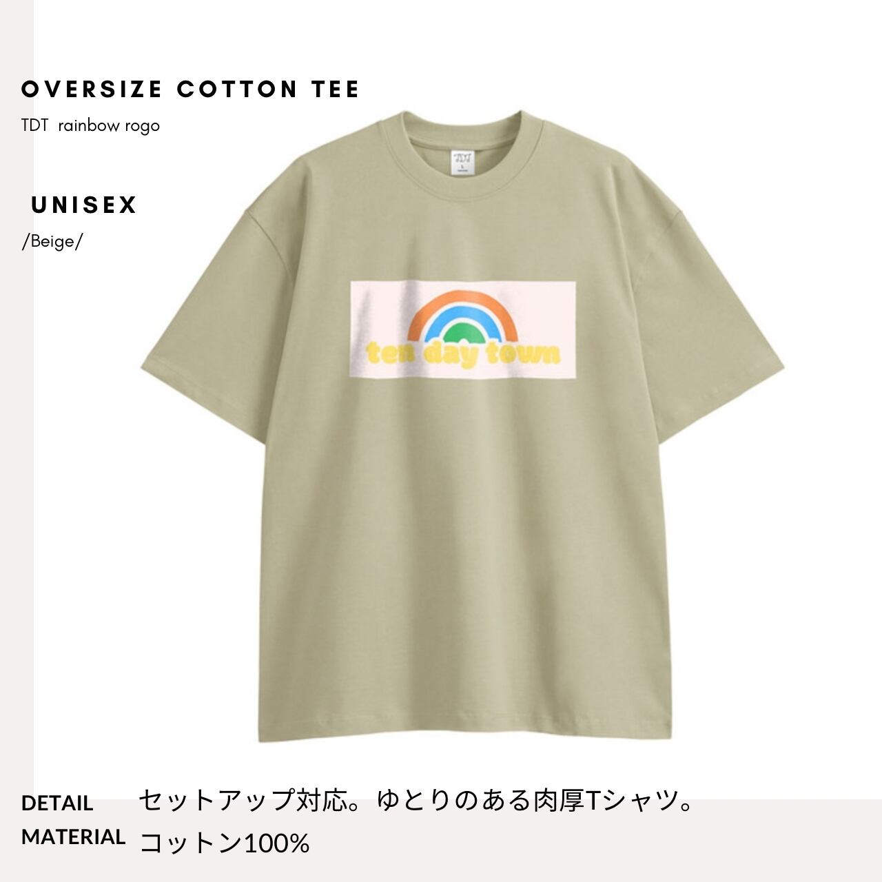 TDT【rainbowロゴプリント】オーバーサイズ コットンTシャツ (セットアップ 対応) ベージュ