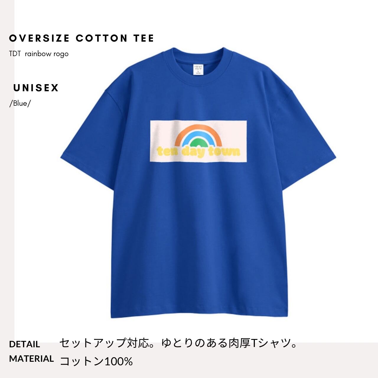TDT【rainbowロゴプリント】オーバーサイズ コットンTシャツ (セットアップ 対応) ブルー
