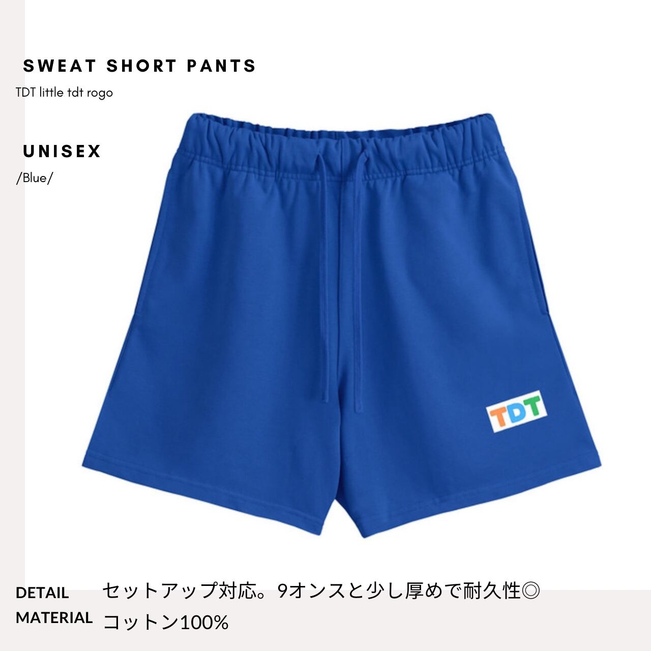 TDT【little tdtロゴプリント】スウェットショートパンツ (セットアップ 対応) ブルー