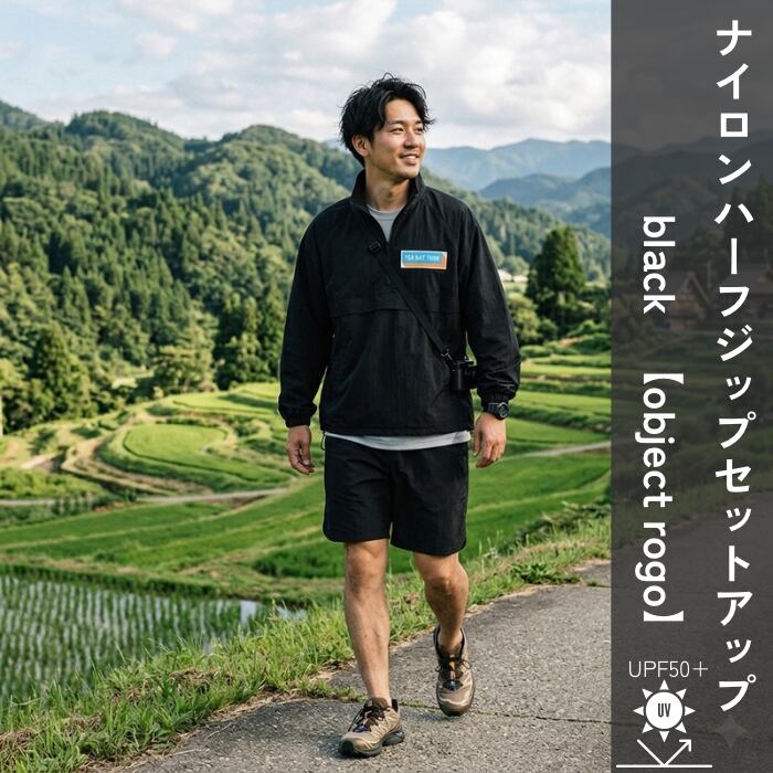 TDT【objectロゴプリント】ハーフジップ ナイロンセットアップ ブラック