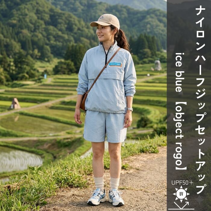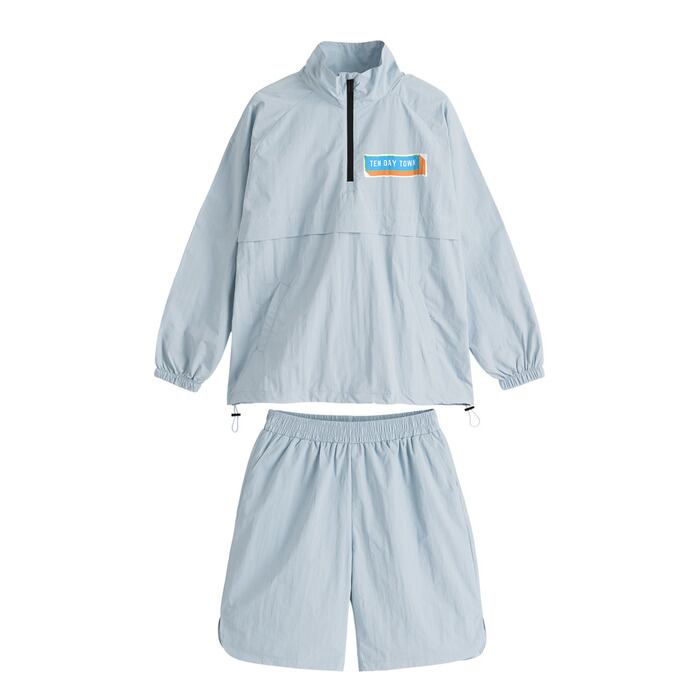 TDT【objectロゴプリント】ハーフジップ ナイロンセットアップ アイスブルー