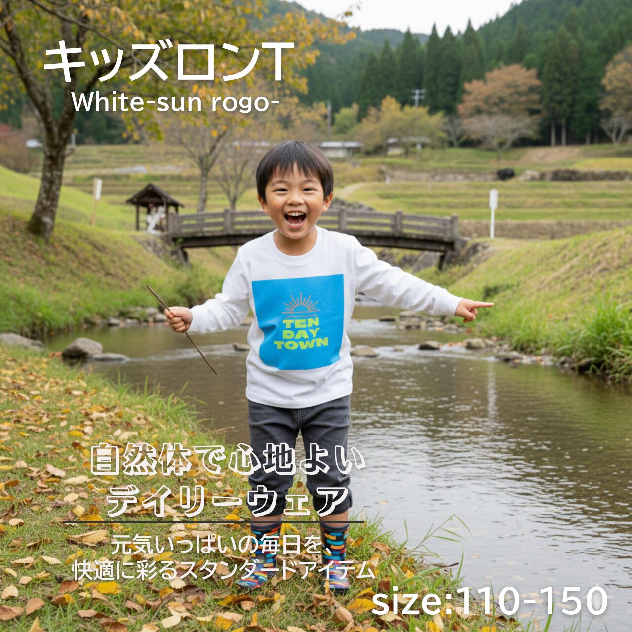 TDT【sunロゴプリント】キッズロンT ホワイト