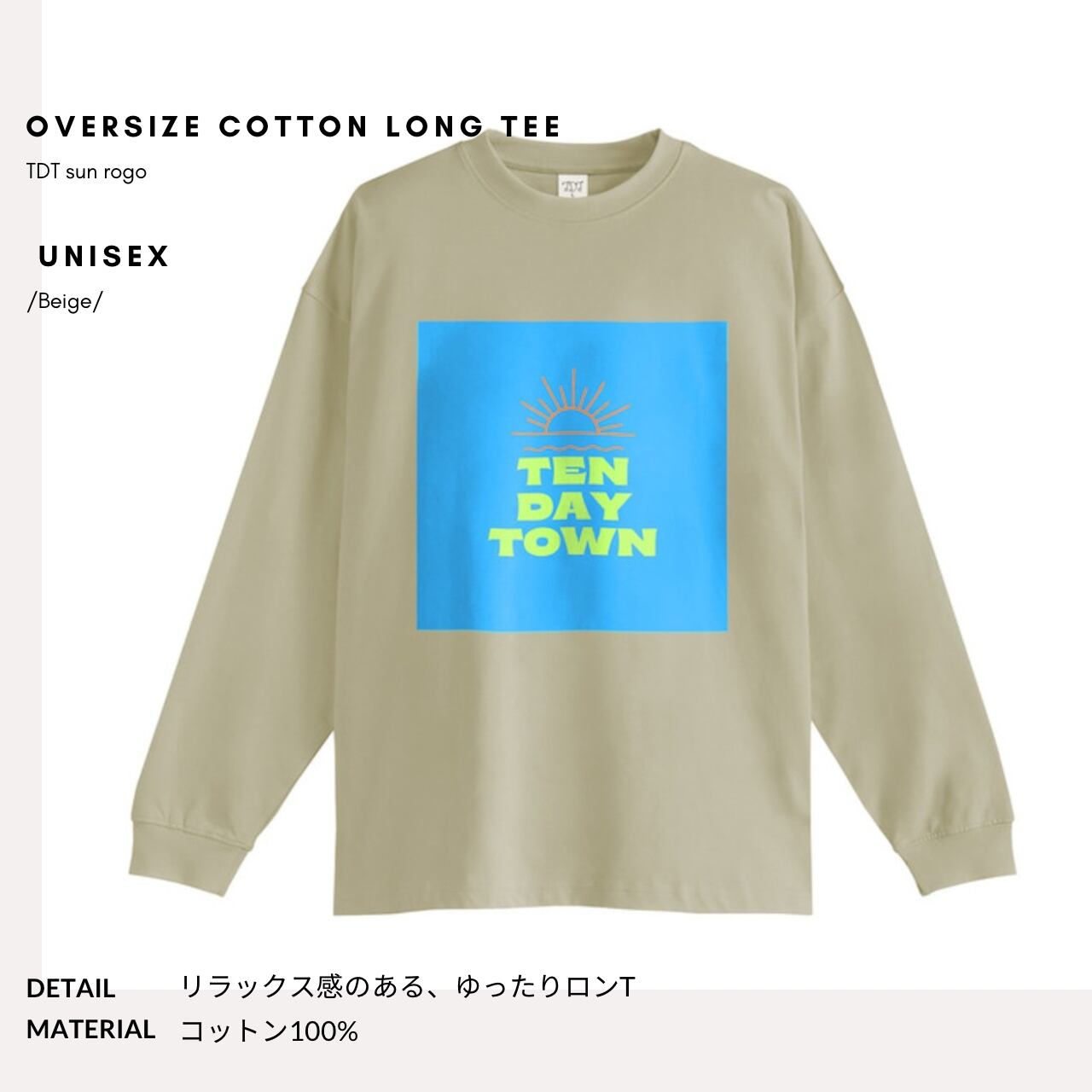 TDT 【sunロゴプリント】オーバーサイズ コットンロンT ベージュ