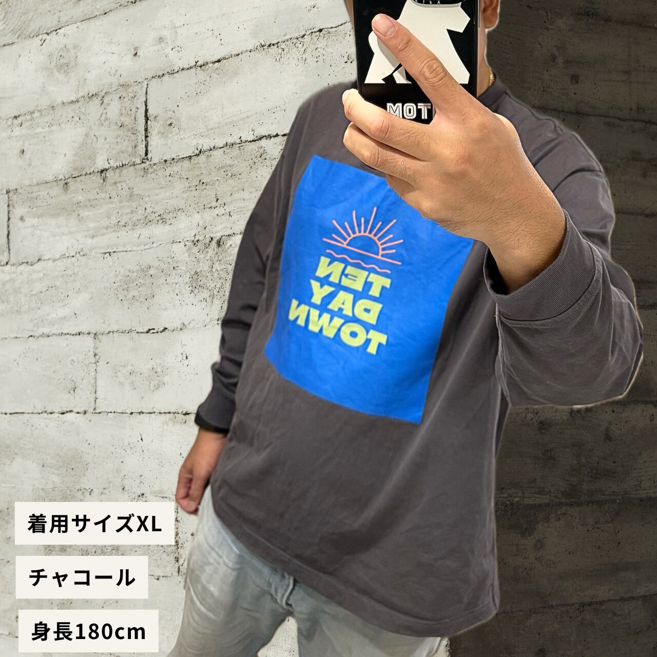 TDT 【sunロゴプリント】オーバーサイズ コットンロンT チャコール