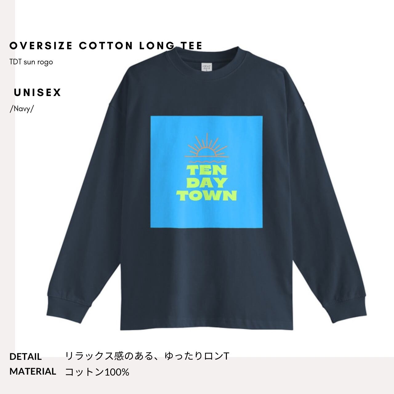 TDT 【sunロゴプリント】オーバーサイズ コットンロンT ネイビー