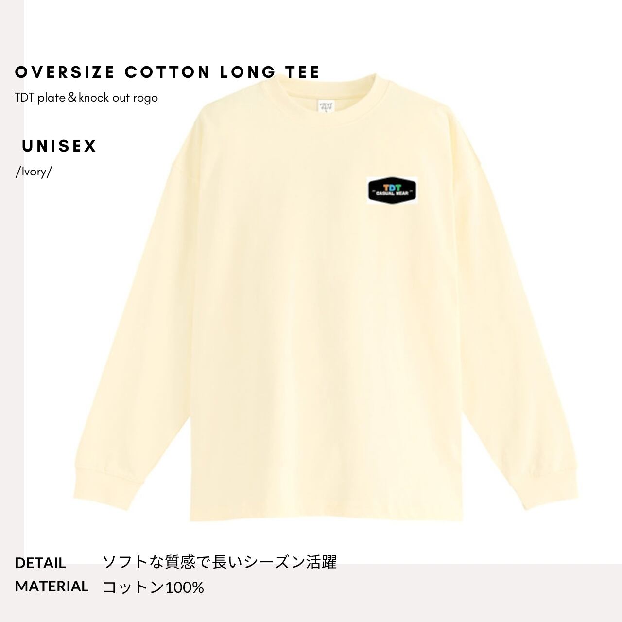 TDT 【plate&knockoutロゴプリント】オーバーサイズ コットンロンT アイボリー