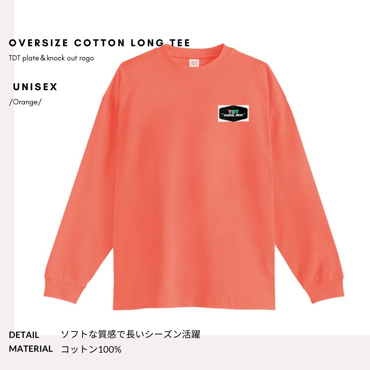 TDT 【plate&knockoutロゴプリント】オーバーサイズ コットンロンT オレンジ