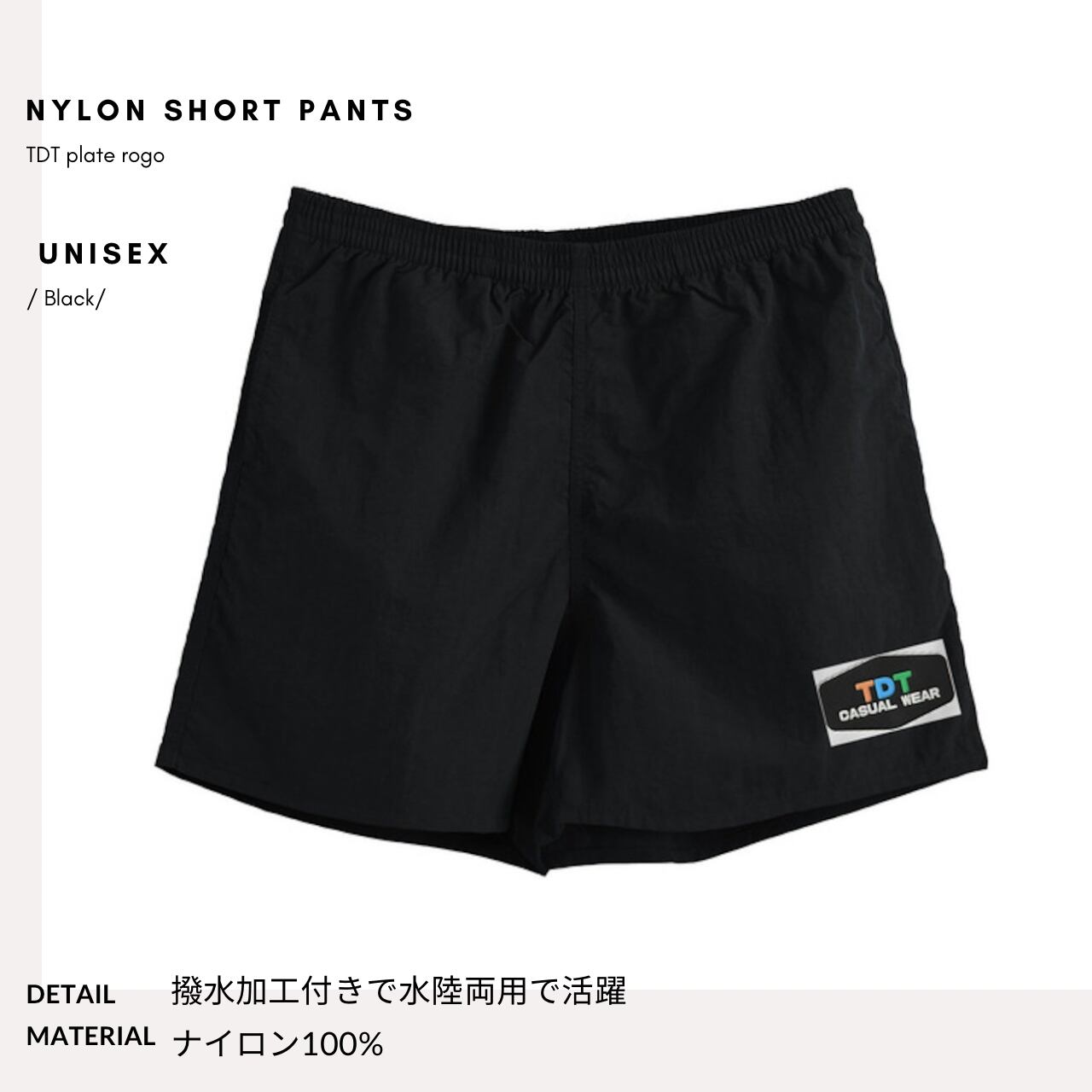 TDT【plateロゴ刺繍】ナイロンショートパンツ ブラック