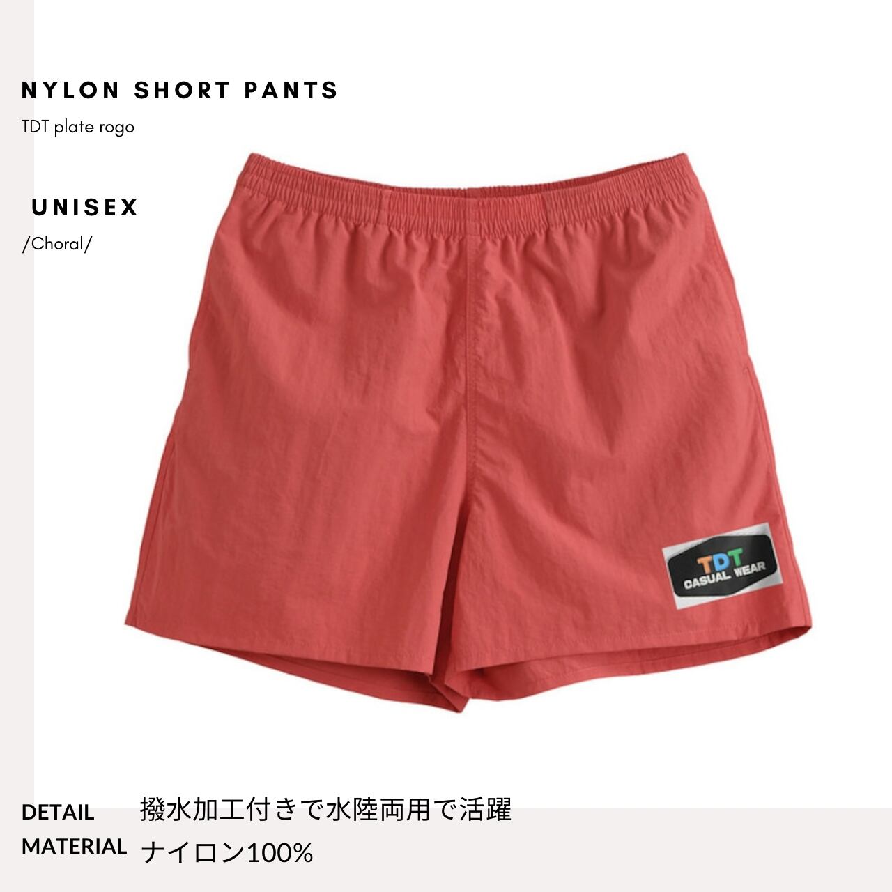 TDT【plateロゴ刺繍】ナイロンショートパンツ コーラル