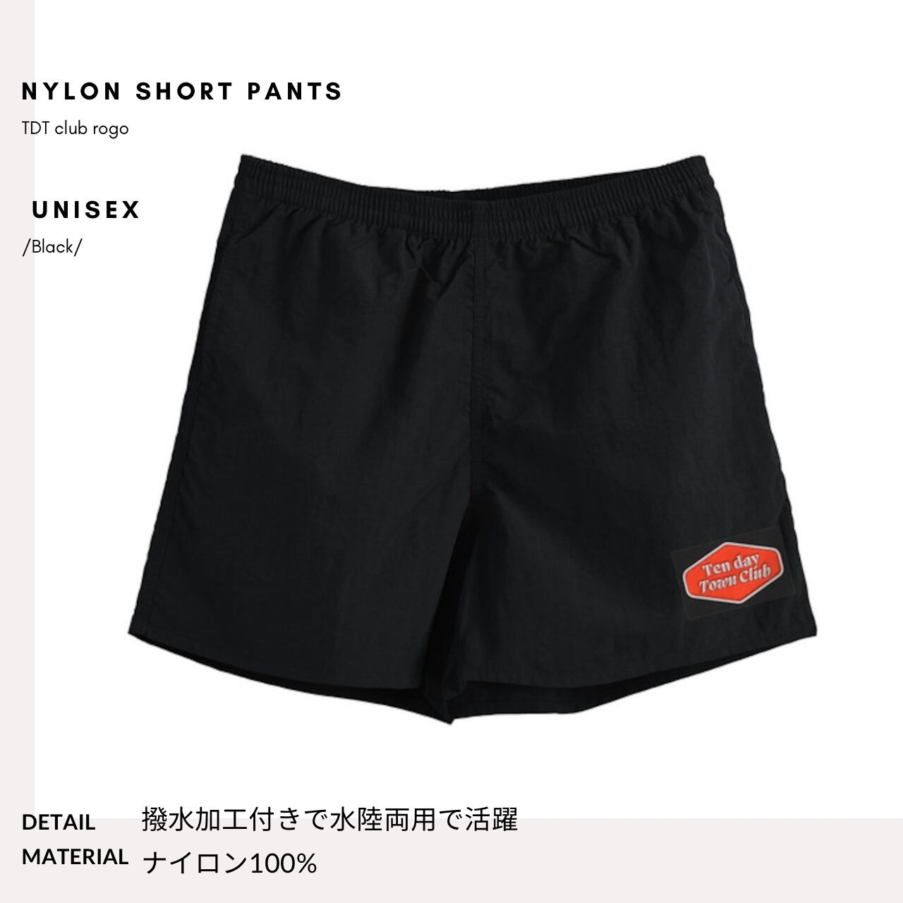 TDT【clubロゴ刺繍】ナイロンショートパンツ ブラック