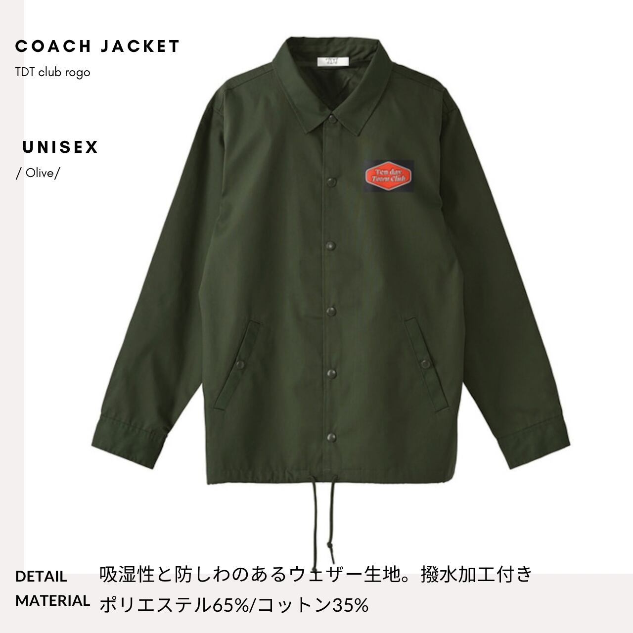TDT 【clubロゴ刺繍】コーチジャケット オリーブ