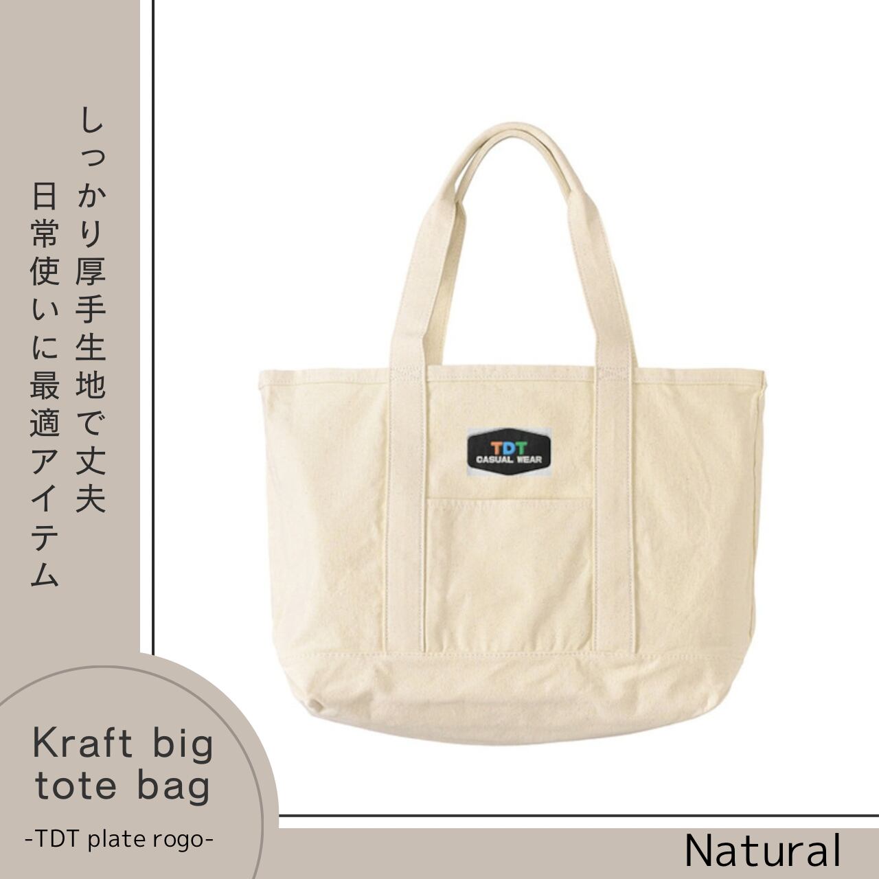 TDT【plateロゴ刺繍】クラフトビッグトート ナチュラル