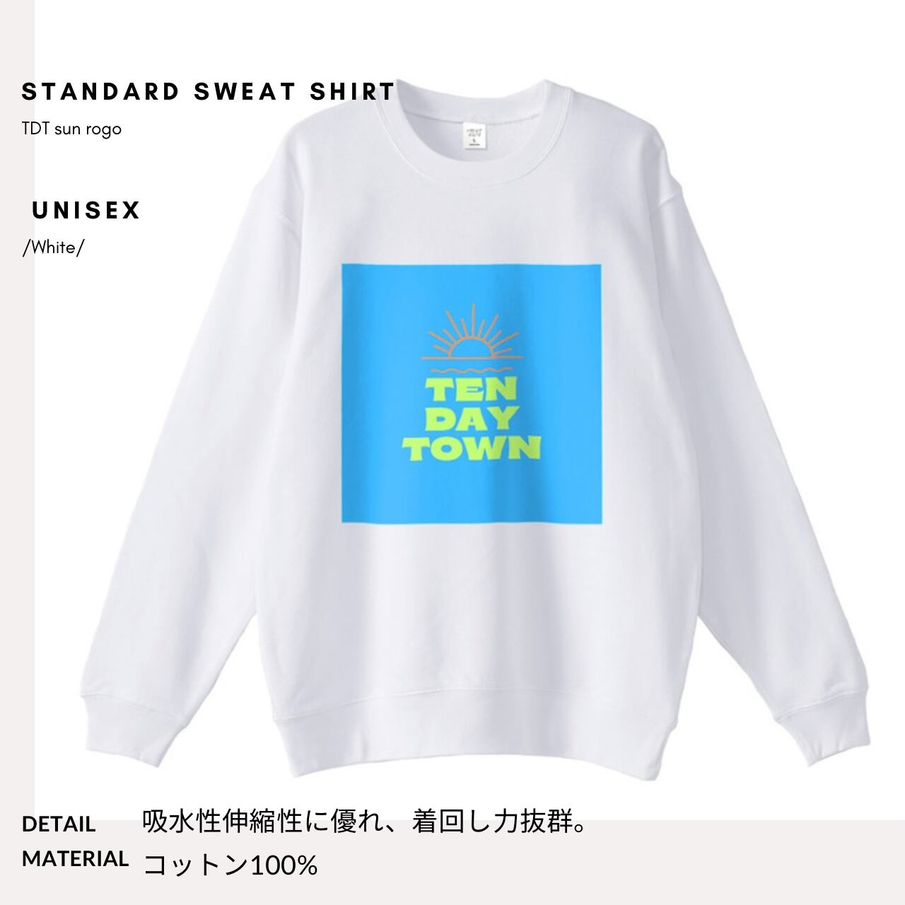 TDT 【sunロゴプリント】スタンダード スウェット ホワイト