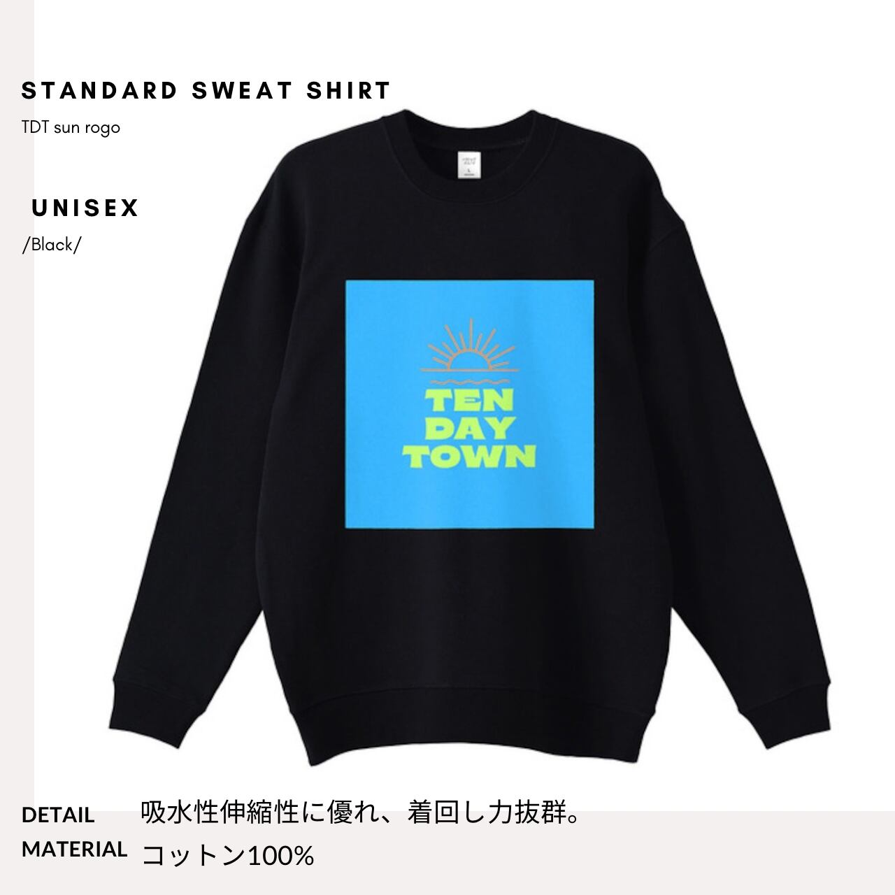 TDT 【sunロゴプリント】スタンダード スウェット ブラック