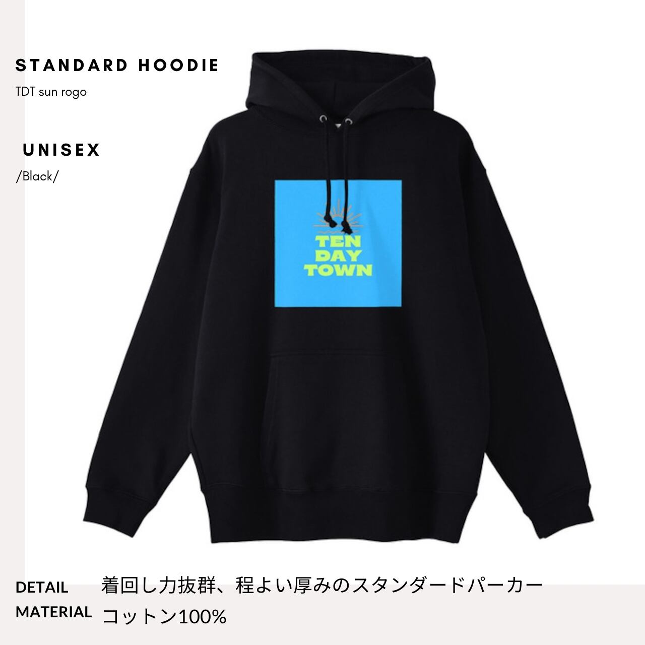 TDT【sunロゴプリント】スタンダード パーカー ブラック