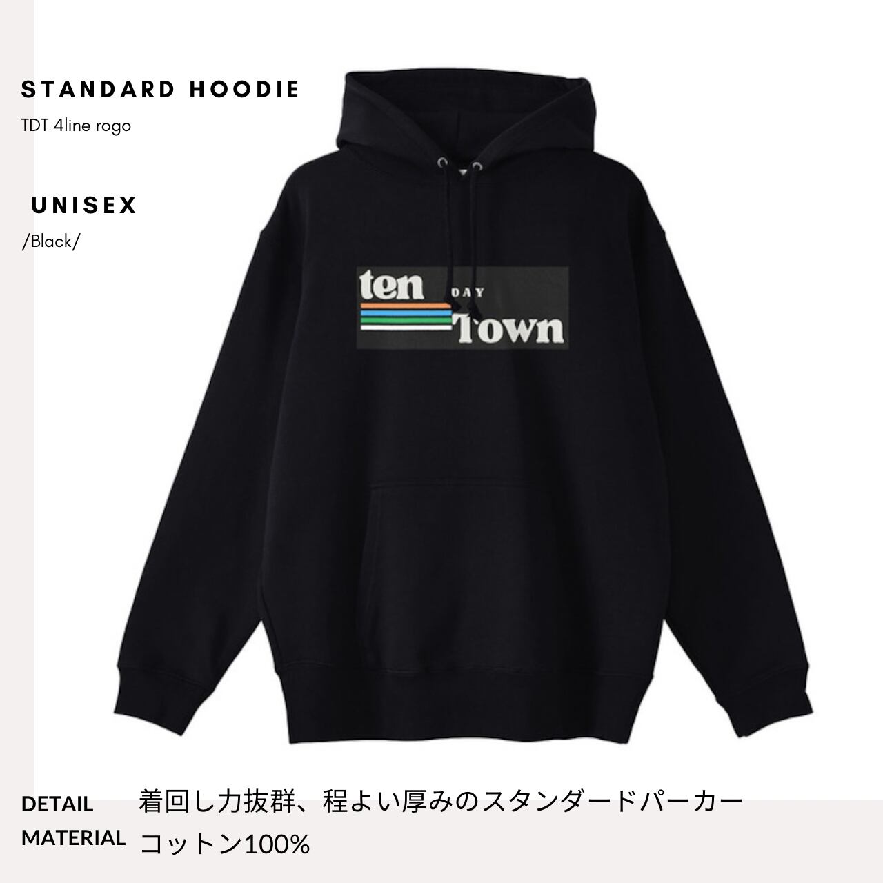 TDT【4lineロゴプリント】スタンダード パーカー ブラック