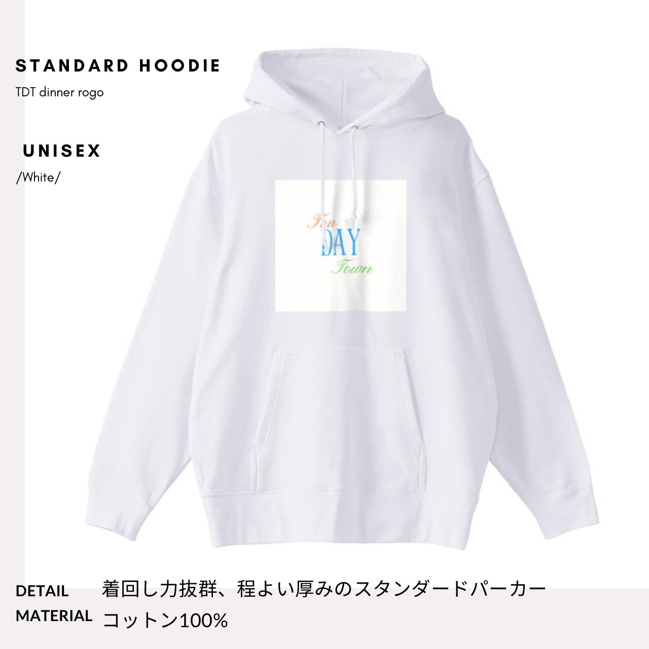 TDT【dinerロゴプリント】スタンダード パーカー ホワイト