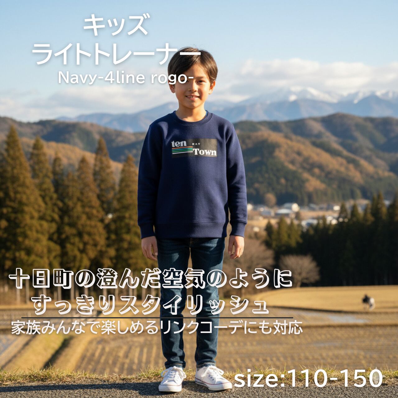 TDt【4lineロゴプリント】kids ライトトレーナー ネイビー