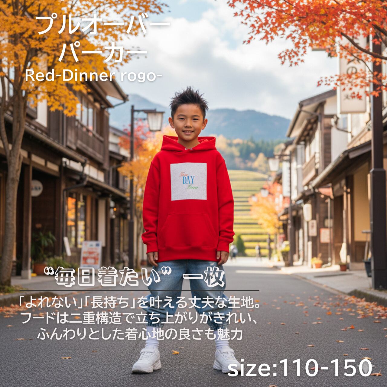 TDT【dinerロゴプリント】kids プルオーバー パーカー レッド