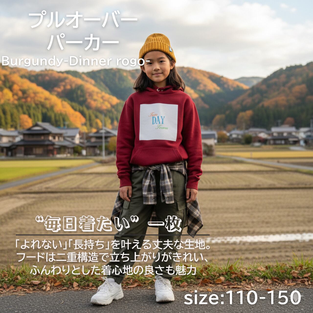 TDT【dinerロゴプリント】kids プルオーバー パーカー バーガンディ