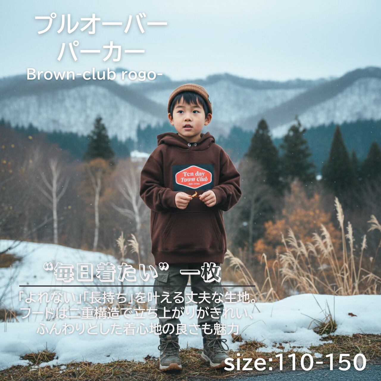 TDT【clubロゴプリント】kids プルオーバー パーカー ブラウン