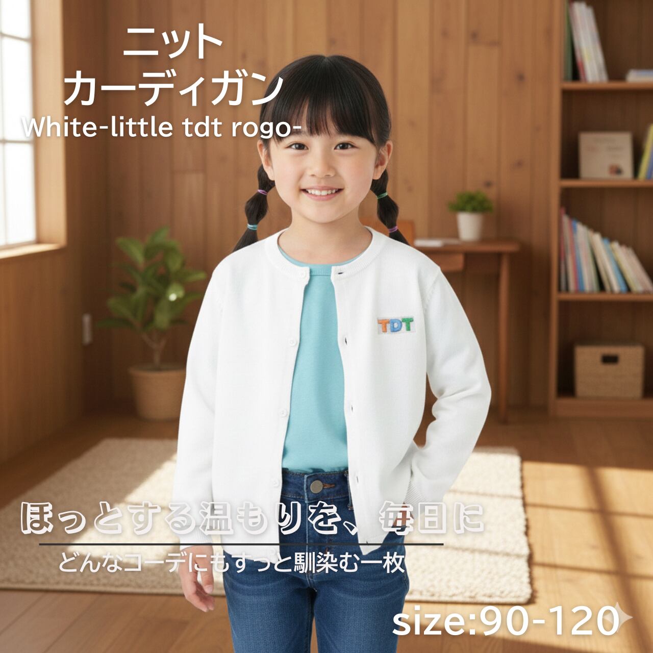 TDT【little TDTロゴ刺繍】kids ニットカーディガン ホワイト