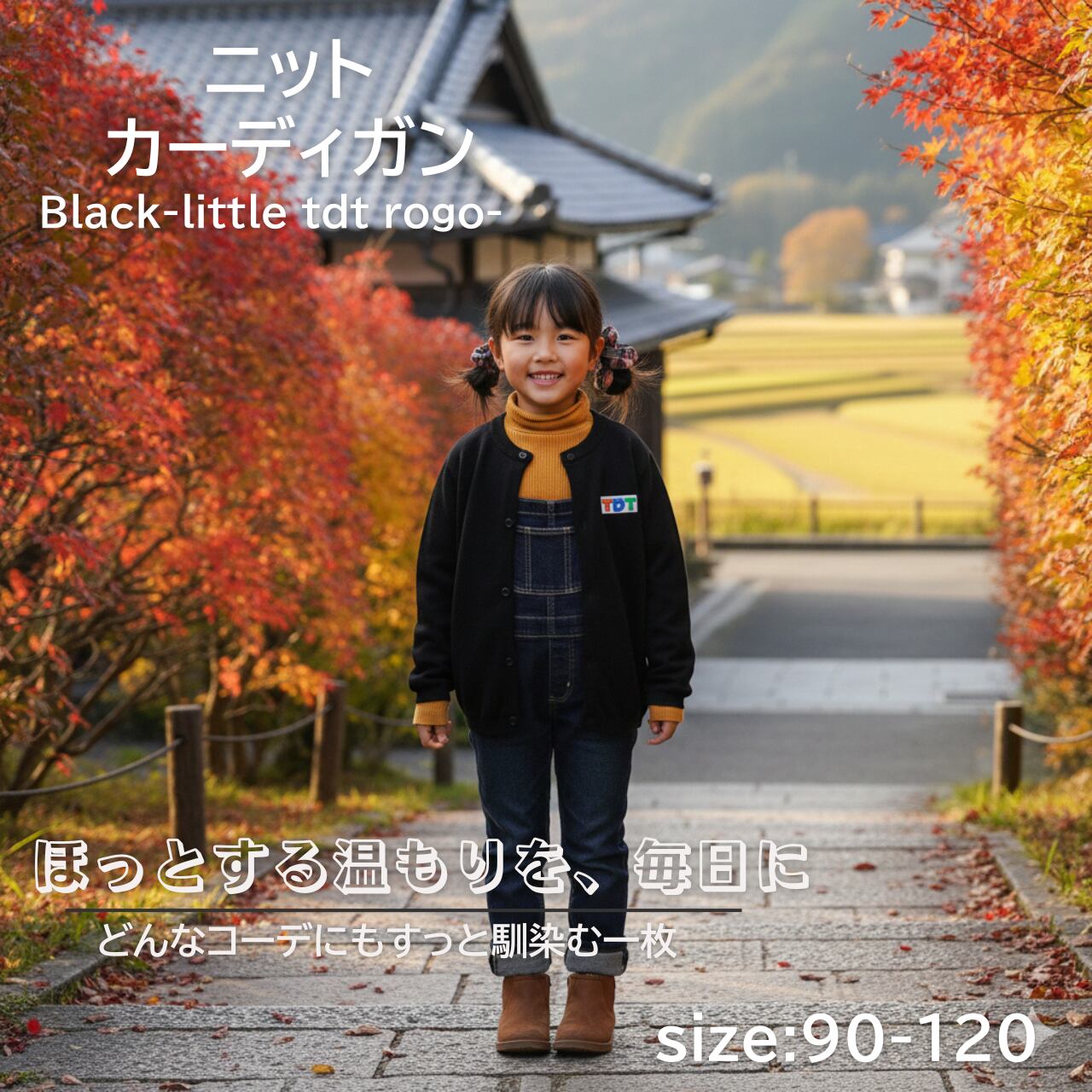TDT【little TDTロゴ刺繍】kids ニットカーディガン ブラック