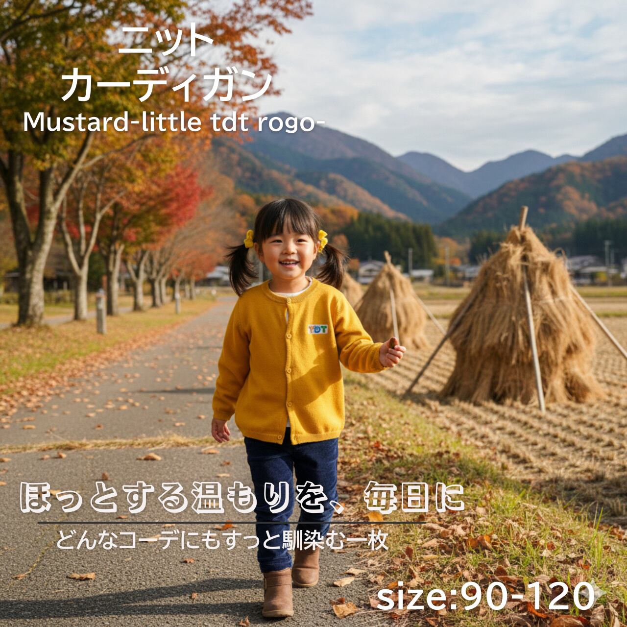 TDT【little TDTロゴ刺繍】kids ニットカーディガン マスタード