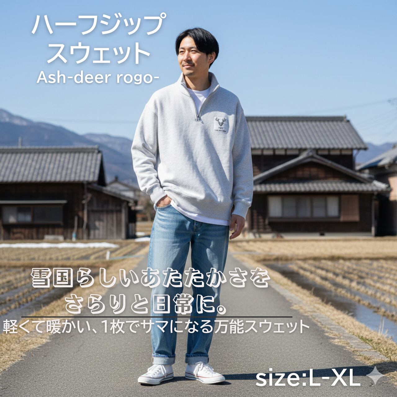 TDT【deerロゴプリント】ハーフジップスウェット アッシュ