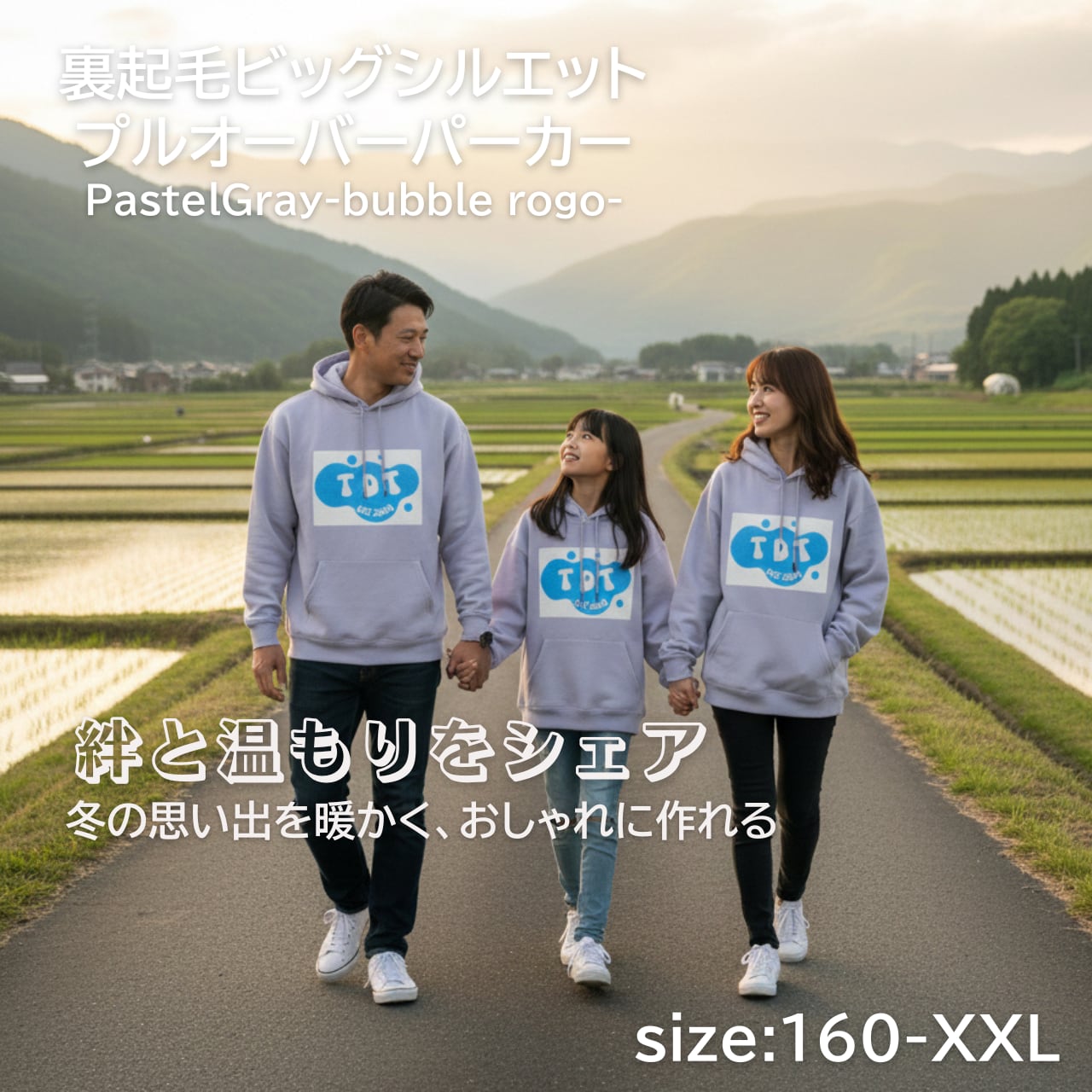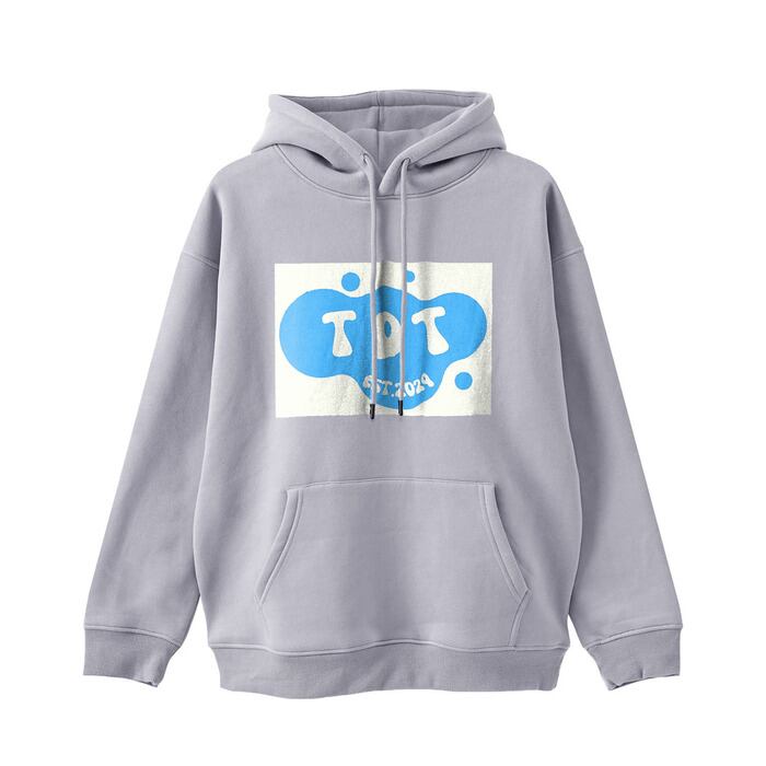 TDT【Bubbleロゴプリント】裏起毛 ビックシルエットプルオーバーパーカー パステルグレー
