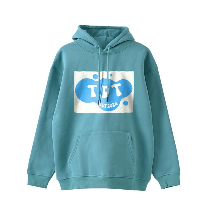 TDT【Bubbleロゴプリント】裏起毛 ビックシルエットプルオーバーパーカー グリーン