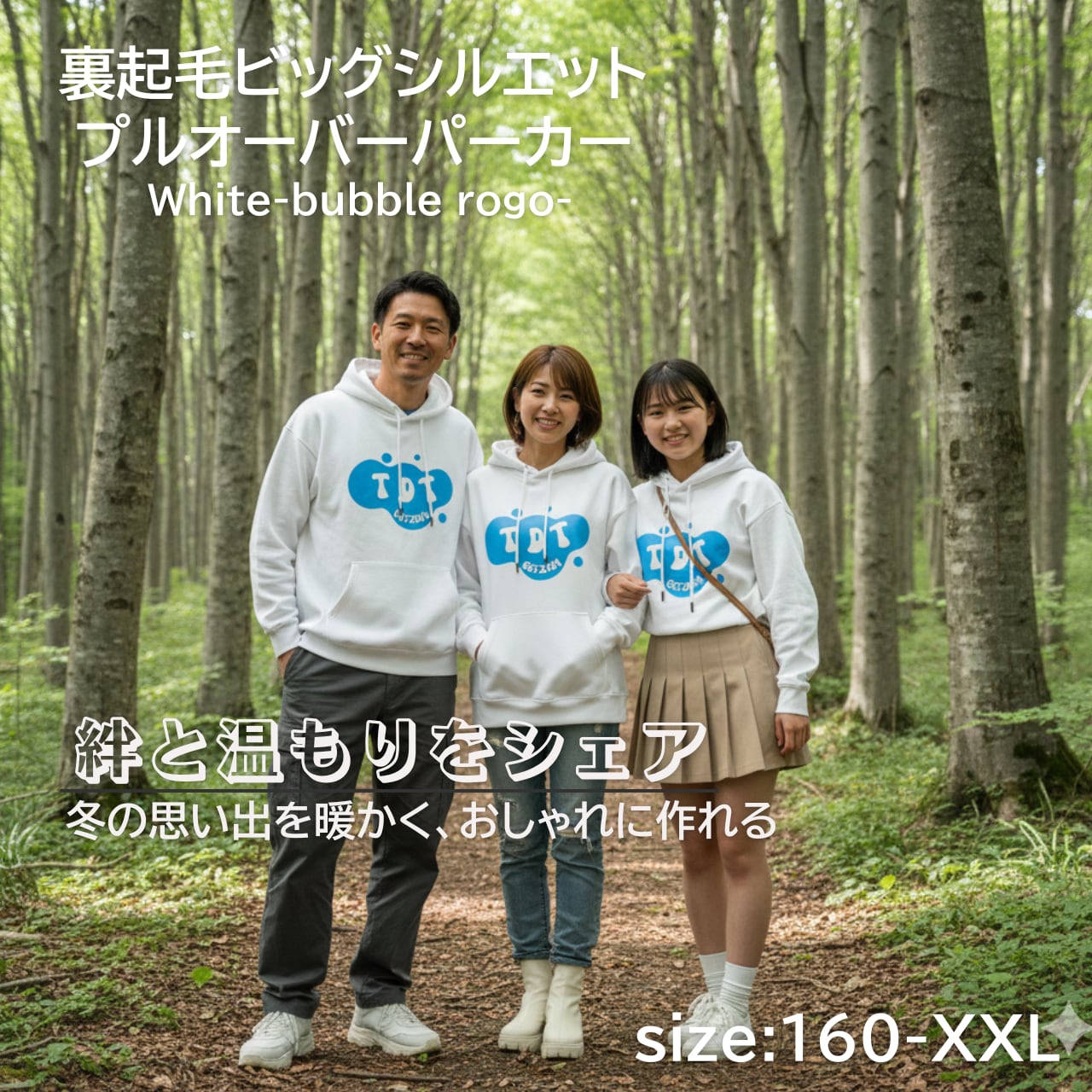 TDT【Bubbleロゴプリント】裏起毛 ビックシルエットプルオーバーパーカー ホワイト